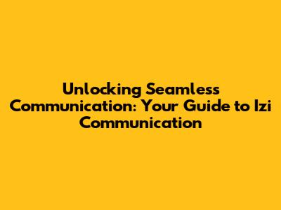 Unlocking Seamless Communication: Your Guide To Izi Communication