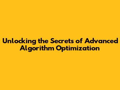 Unlocking The Secrets Of Advanced Algorithm Optimization