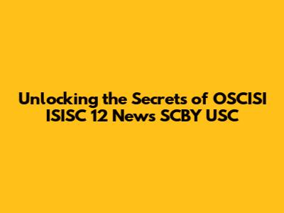 Unlocking The Secrets Of OSCISI ISISC 12 News SCBY USC