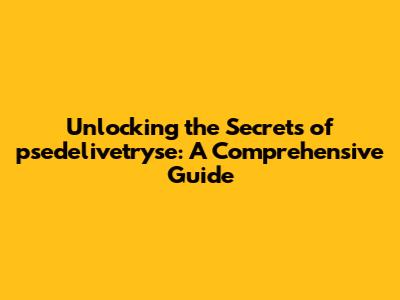 Unlocking The Secrets Of Psedelivetryse: A Comprehensive Guide