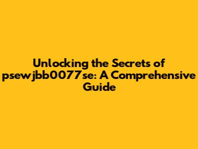 Unlocking The Secrets Of Psewjbb0077se: A Comprehensive Guide