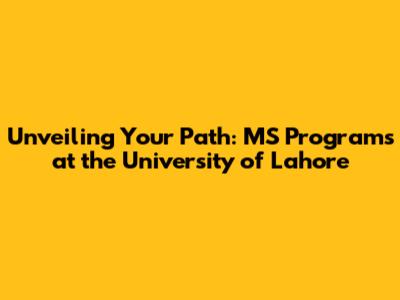 Unlocking Your Future: MS Programs At University Of Lahore