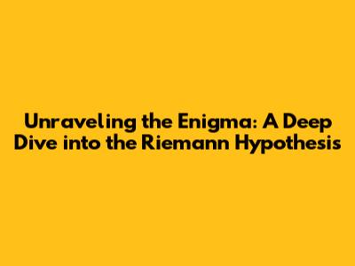 Unraveling The Enigma: A Deep Dive Into The Riemann Hypothesis
