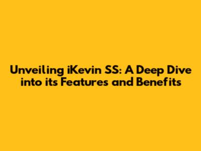 Unveiling IKevin SS: A Deep Dive Into Its Features And Benefits