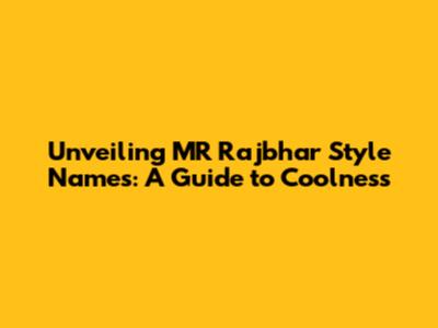 Unveiling MR Rajbhar Style Names: A Guide To Coolness