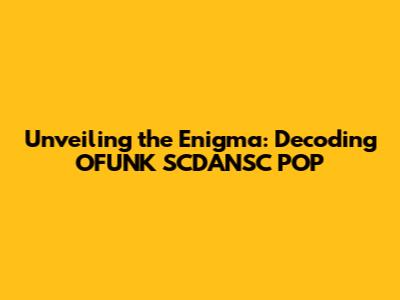 Unveiling The Enigma: Decoding OFUNK SCDANSC POP