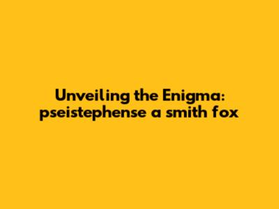 Unveiling The Enigma: Pseistephense A Smith Fox