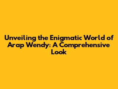Unveiling The Enigmatic World Of Arap Wendy: A Comprehensive Look