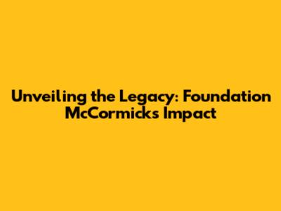 Unveiling The Legacy: Foundation McCormick's Impact