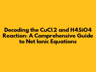 Unveiling The Net Ionic Equation: CuCl2 And H4SiO4 Reaction