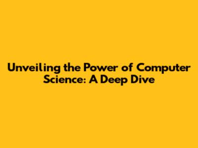 Unveiling The Power Of Computer Science: A Deep Dive