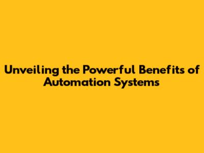 Unveiling The Powerful Benefits Of Automation Systems