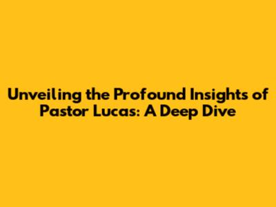 Unveiling The Profound Insights Of Pastor Lucas: A Deep Dive