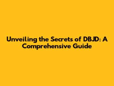 Unveiling The Secrets Of DBJD: A Comprehensive Guide