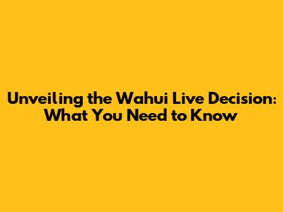 Unveiling The Wahui Live Decision: What You Need To Know