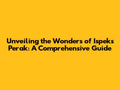 Unveiling The Wonders Of Ispeks Perak: A Comprehensive Guide