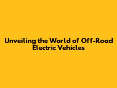 Unveiling The World Of Off-Road Electric Vehicles
