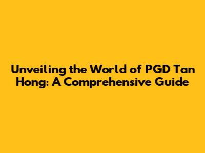 Unveiling The World Of PGD Tan Hong: A Comprehensive Guide