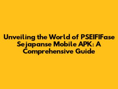 Unveiling The World Of PSEIFIFase Sejapanse Mobile APK: A Comprehensive Guide