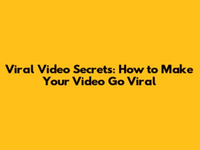 Viral Video Secrets: How To Make Your Video Go Viral