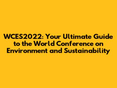 WCES2022: Your Guide To The World Conference On Environment And Sustainability