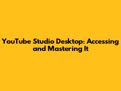 YouTube Studio Desktop: Accessing And Mastering It