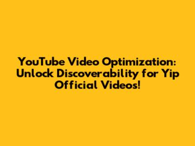 YouTube Video Optimization: Get Yip Official Videos Discovered!