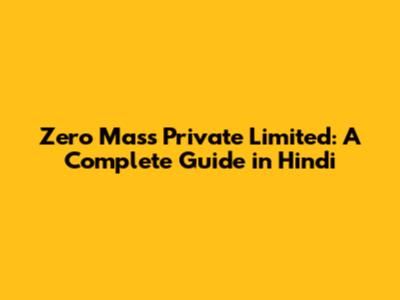 Zero Mass Private Limited: A Complete Guide In Hindi
